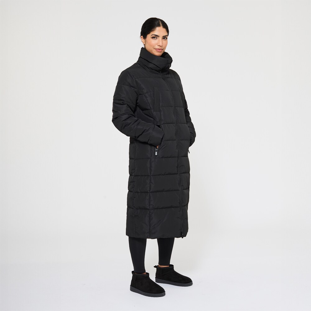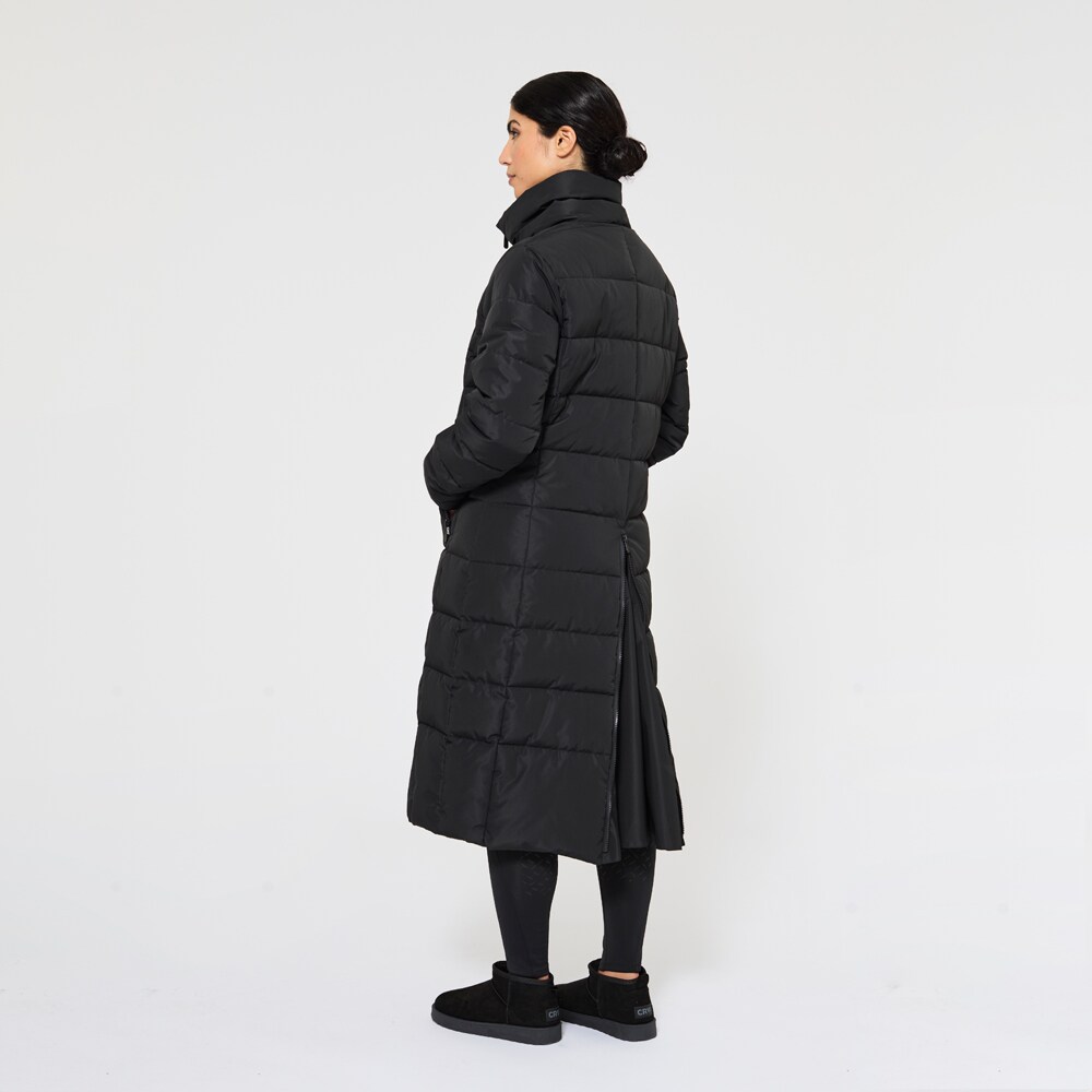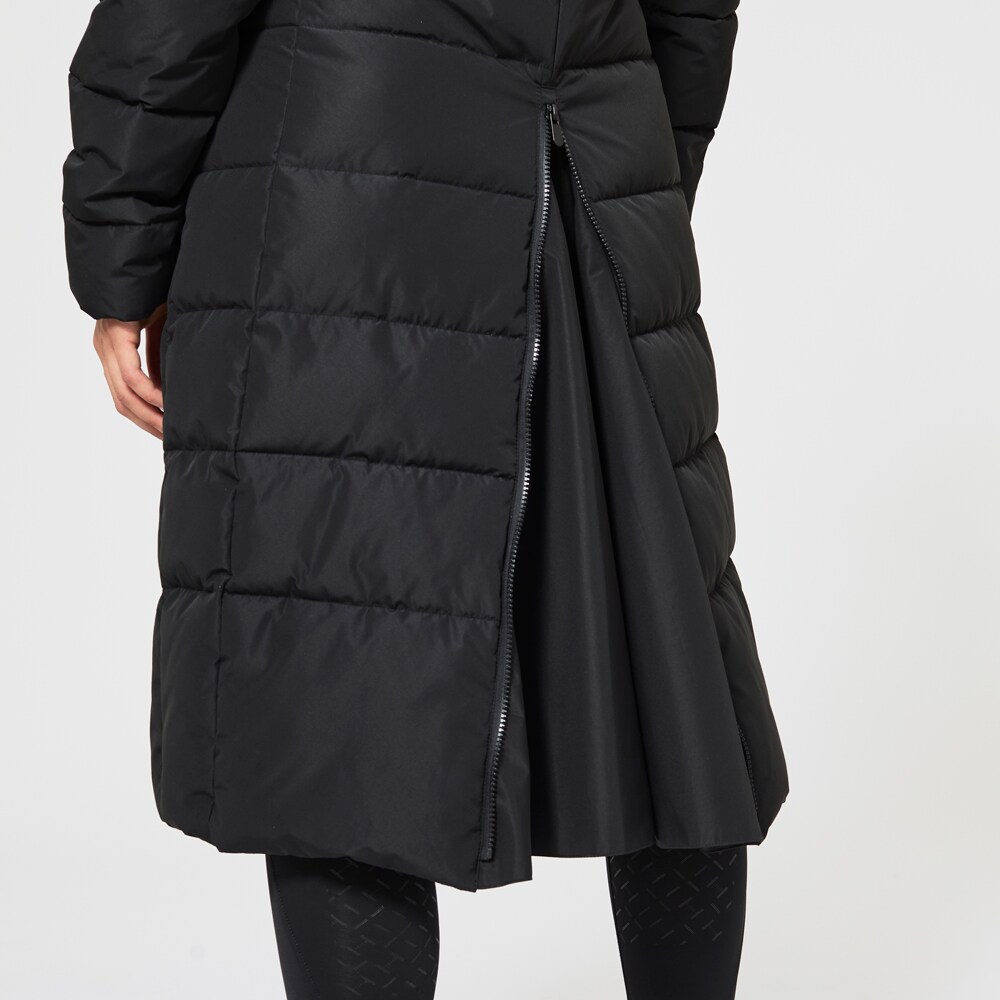 Lange gevoerde jas met hoge met fleece gevoerde kraag. Stijlvol ontwerp met praktische zakken met ritssluiting, twee borstzakken met drukknopen en een binnenzak. Tweewegritssluiting aan de voorzijde en rijopening aan achterzijde maken dit tot een functionele paardrijjas. Elastische manchetten aan de mouwen. Het jack is behandeld met Rudolf Bionic Finish Eco, een vuil- en waterafstotende behandeling.