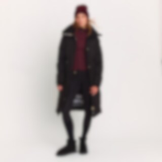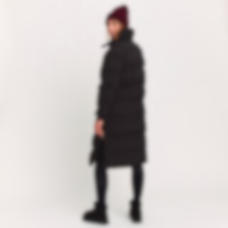 Lange gevoerde jas met hoge met fleece gevoerde kraag. Ruime pasvorm. De vulling van gerecycled polyester heeft eigenschappen die dons nabootsen en een gevoel van dons geven. Grote zakken met klep en drukknopen aan de voorkant. Binnenzak met ritssluiting.