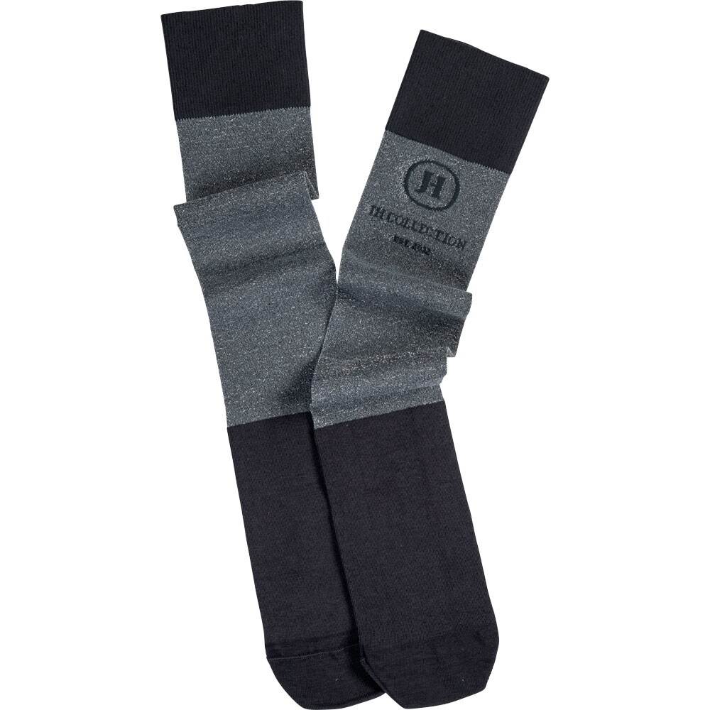 2-pak laarssokken met dunne schacht gebreid met lurex-draad met glitters. De voet is gemaakt met dikker garen voor extra comfort. JH-logo op de schacht.