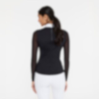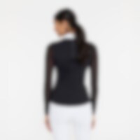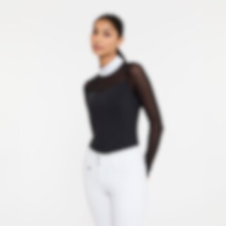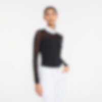 Functionele top met meshdetails. Het mesh geeft niet alleen een moderne uitstraling maar ook een goed ademend vermogen. Panelen aan de zijkant zorgen voor een slanke pasvorm. De elastische micro-functionele stof ligt zacht tegen het lichaam en geeft een licht draaggevoel. Aan de achterkant zit een verborgen ritssluiting.