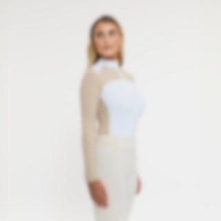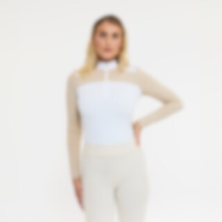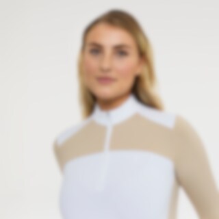 Trainings- en wedstrijdtop met lange mouwen van zacht en functioneel stretchmateriaal. Getailleerde pasvorm met opstaande kraag en verborgen opening met ritssluiting voorop. Panden in contrasterende kleur zorgen voor een sierlijk kledingstuk.