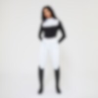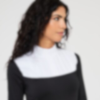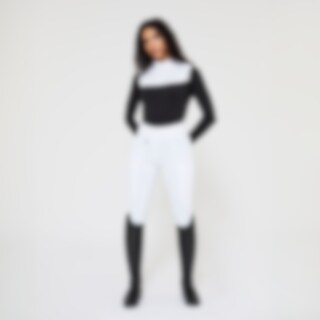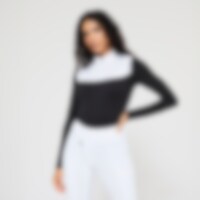 Wedstrijdtop met lange mouwen en getailleerde pasvorm. Zacht en rekbaar functioneel materiaal dat zowel onderhoudsvriendelijk als sneldrogend is. Geweven schouderstuk met plooien. Wedstrijdkraag met opening voorzien van ritssluiting middenvoor.