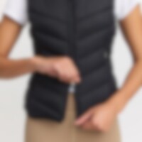 Sportief lichtgewicht vest met eenvoudig en stijlvol design. Het getailleerde model geeft een vrouwelijke look. Twee zakken met ritssluiting aan voorzijde. Elastische rand aan de onderkant en in de oksels met onopvallend logo. Tweewegritssluiting aan de v