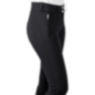 Rijbroek met zadelsnit met volledige zit van Daewoo-stof. Twee zakken met rits aan de voorkant. Elastiek bij de enkels. Riemlussen op tailleband.