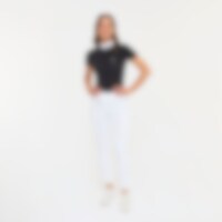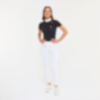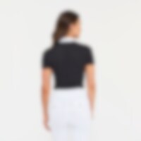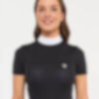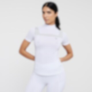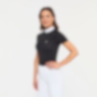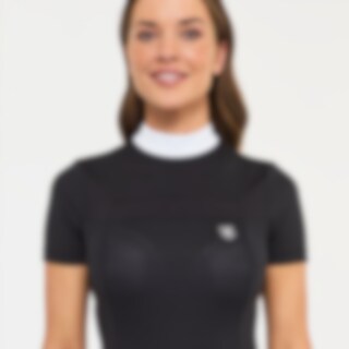 Wedstrijdtop van rekbaar, fraai kantachtige mesh. De ingewerkte tricotgedeelten zorgen bovendien voor een sportievere look. Getailleerde pasvorm met opstaande kraag en verborgen ritssluiting achterop. De rekbare kwaliteit zorgt voor een zeer goede bewegingsvrijheid en het mesh geeft een goede ventilatie.