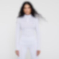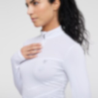Wedstrijdtop met lange mouwen en getailleerde pasvorm. Zacht en rekbaar functioneel materiaal dat zowel onderhoudsvriendelijk als sneldrogend is. Wedstrijdkraag met opening voorzien van ritssluiting middenvoor en kinbescherming. De top heeft aan de voorkant een geperforeerd patroon, dat een leuk detail vormt en zorgt voor goede ventilatie.