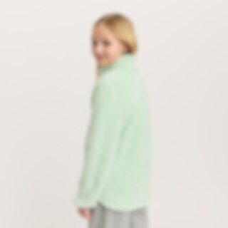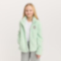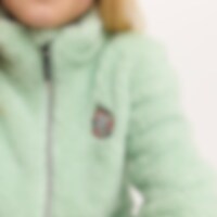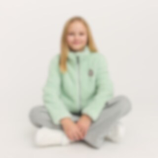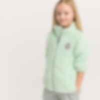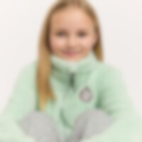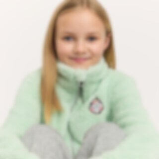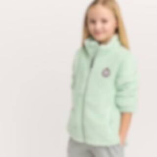 Een trui van zachte fleece met een hoge kraag, een ritssluiting aan de voorkant en twee open zakken. Kinbescherming zorgt ervoor dat het vest comfortabel zit en niet schuurt. De trui heeft glitterdraden en een geborduurde eenhoorn op de voorkant.
