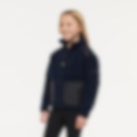 Teddyjack met hoge kraag. Met gewatteerde details op de schouders en voorzakken heeft de jas een moderne en trendy uitstraling. Praktische kenmerken zijn onder meer twee voorzakken en een borstzak, allemaal met ritssluiting. Het Farfield-logo siert de ach