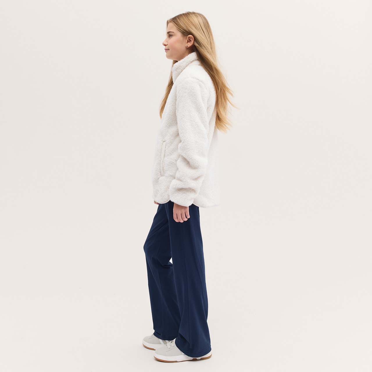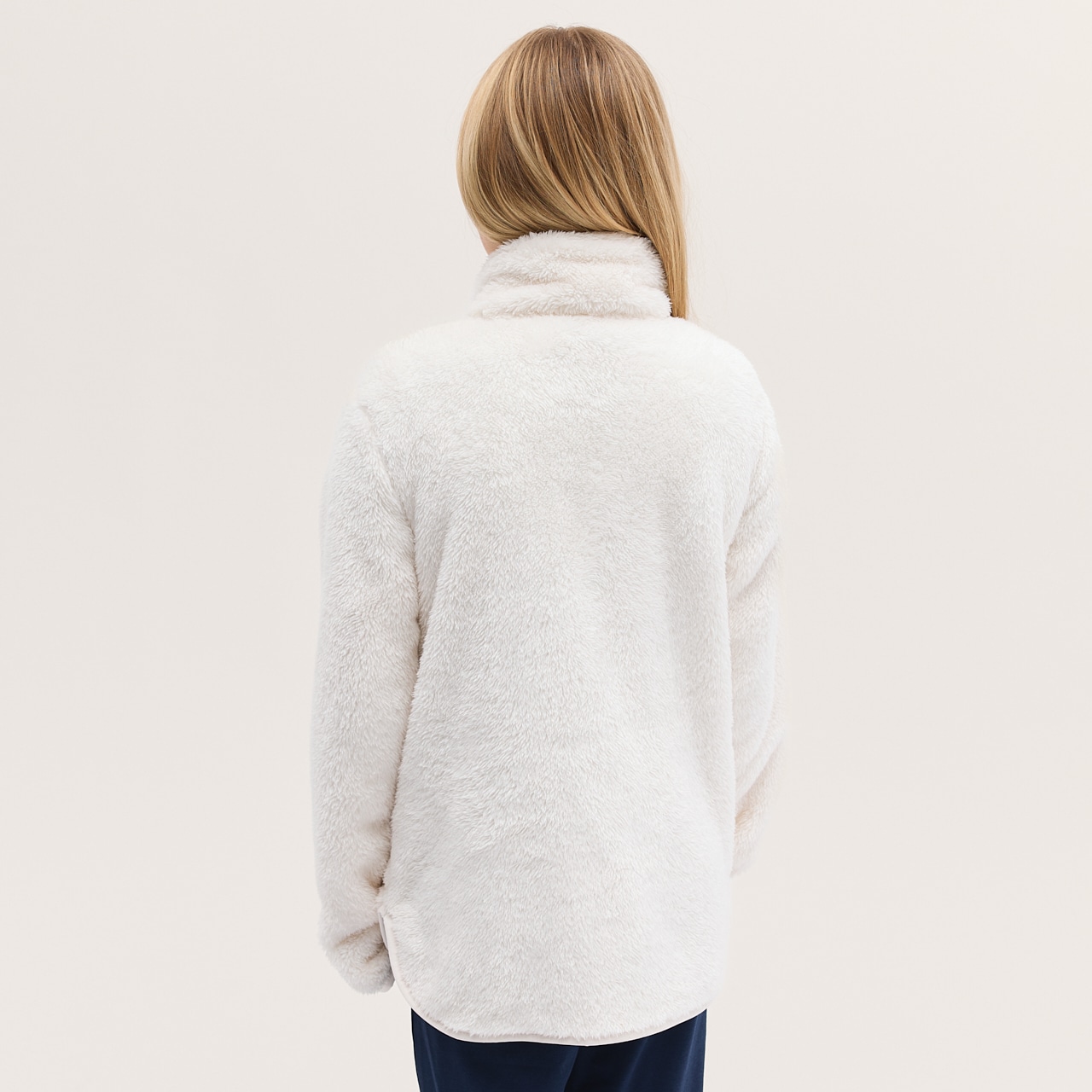 Sweater van zachte fleece met een hoge kraag en een praktische tweewegritssluiting. Elastische band aan de manchetten en zoom. De sweater heeft zakken in de zij.