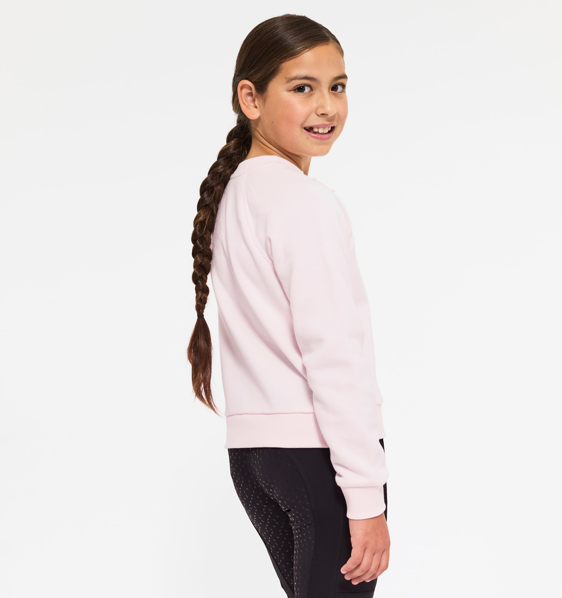 Het sweatshirt dat met zijn decoratieve parels net zo goed werkt in de stal als in het dagelijks leven. Relaxte pasvorm met zacht geborstelde binnenkant. Geribde manchetten langs de hals, mouwen en onderkant.