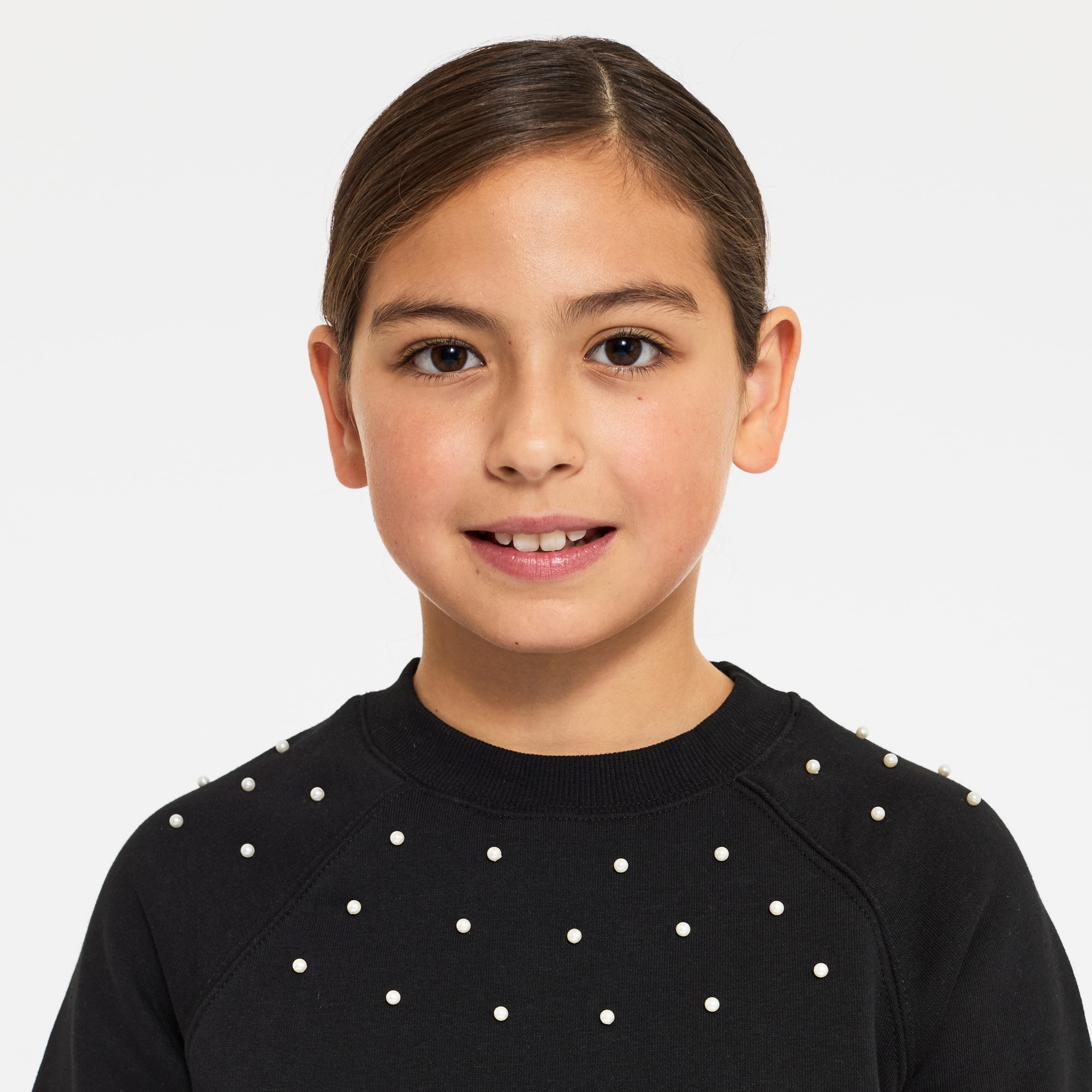 Het sweatshirt dat met zijn decoratieve parels net zo goed werkt in de stal als in het dagelijks leven. Relaxte pasvorm met zacht geborstelde binnenkant. Geribde manchetten langs de hals, mouwen en onderkant.