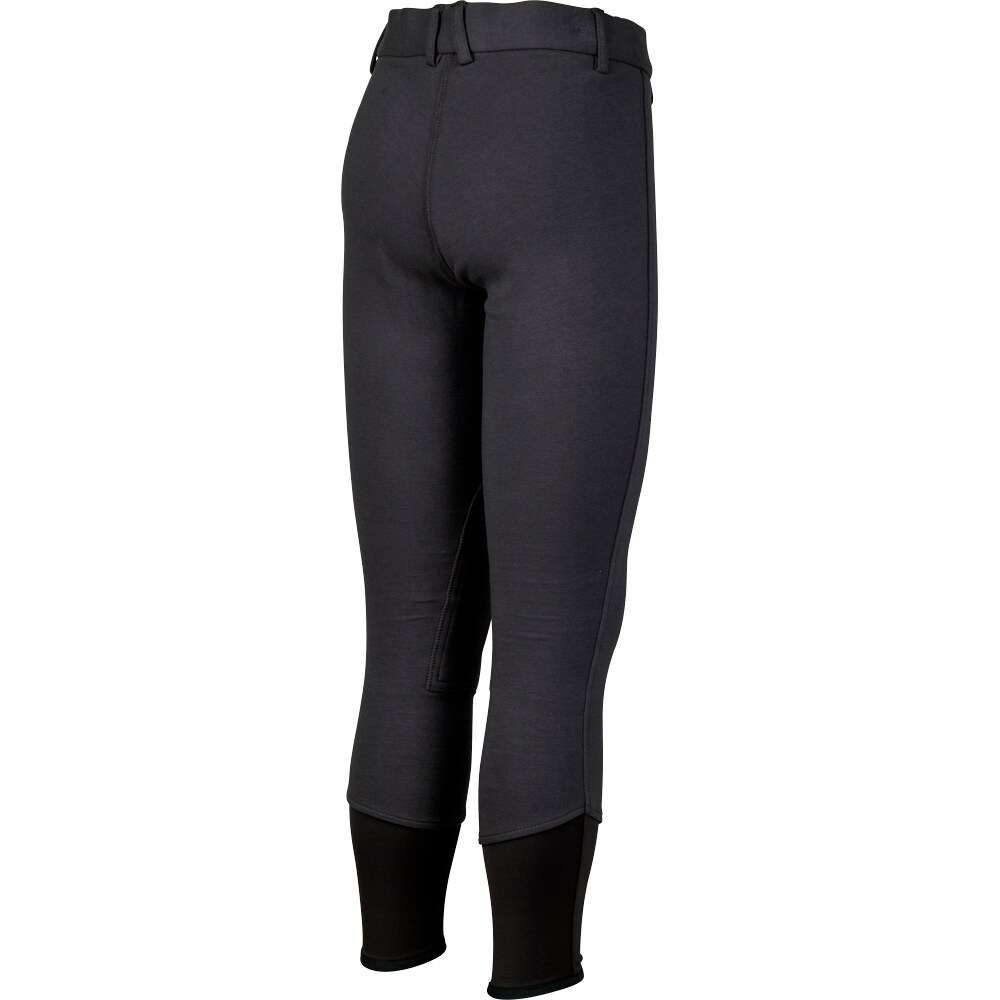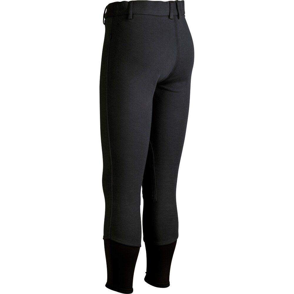 Comfortabele basisrijbroek van katoenen stretchtricot met knieversteviging. Normaal taillehoogte. Elastiek onderaan de pijpen. Voering met intasten.