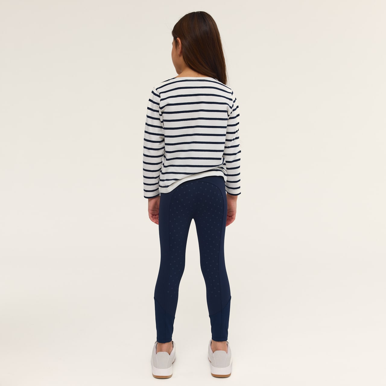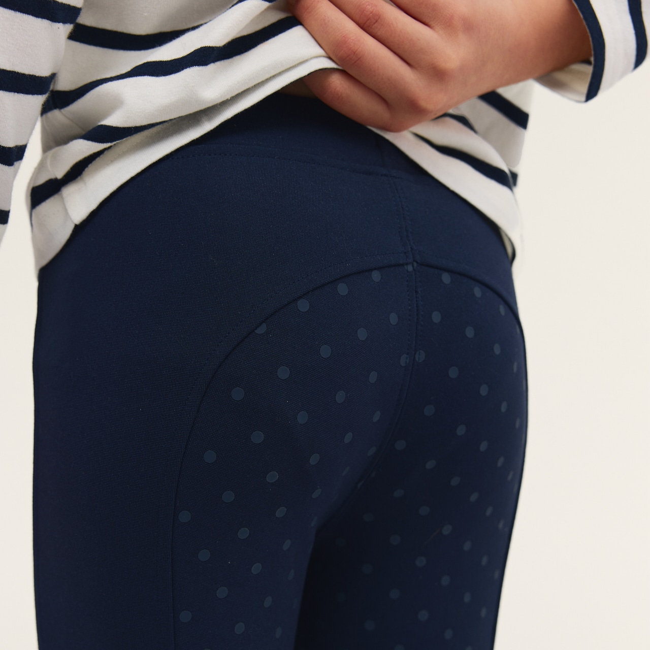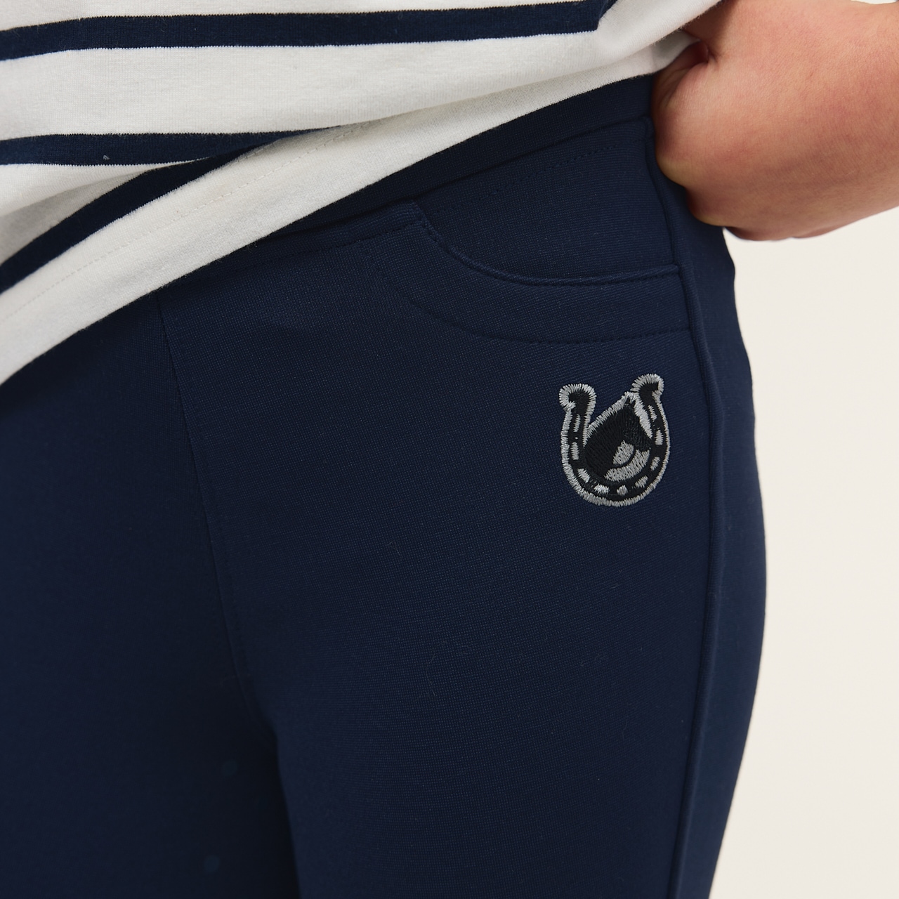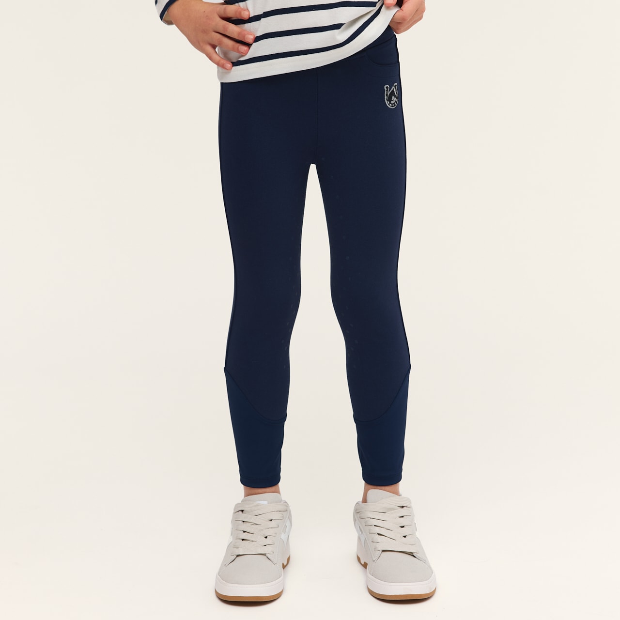 Leuke rijleggings voor de kleinste ruiters. Pull On rijlegging met zadelgedeelte van zacht en rekbaar materiaal. Geheel versterkt met griplaag. Elastische tailleband met trekkoord. Elastiek onderaan de pijpen.