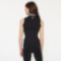 Top zonder mouwen van zacht en soepel, functioneel materiaal. Functioneel ontwerp met een getailleerde pasvorm. Opstaande kraag van ribstof met geweven strepen die een tijdloze, sportieve look geven en geribde afwerking rond de armsgaten. Verborgen ritssluiting aan de voorzijde. Uitstekend geschikt voor warmere zomerdagen of als basislaag bij lagere temperaturen.