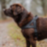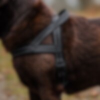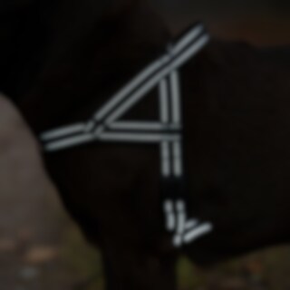 Nylon tuigje met reflecterende details. Gevoerd met zacht neopreen over het borstbeen en de rug. Verstelbaar rond de buik.