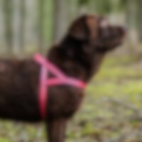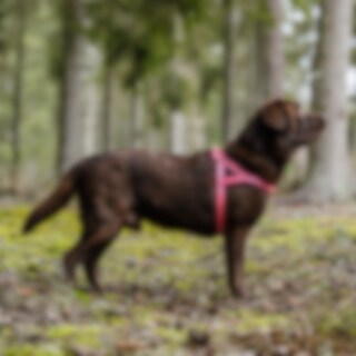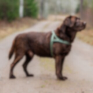 Nylon tuigje met reflecterende details. Gevoerd met zacht neopreen over het borstbeen en de rug. Verstelbaar rond de buik.