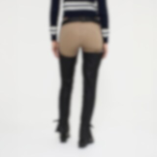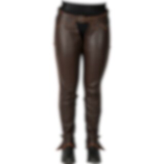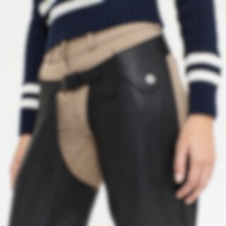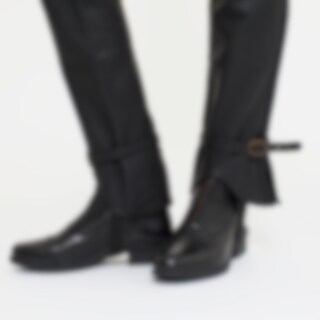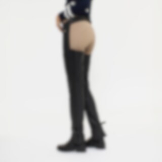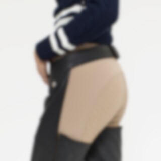 De chaps zijn helemaal vervaardigd van zacht, soepel leer. Het slijtvaste leer beschermt de benen en geeft optimale grip in het zadel. De riem heeft zowel voor als achter gespen, voor de best mogelijke pasvorm. Elastische stof onder de voet en riem voor a