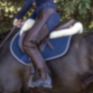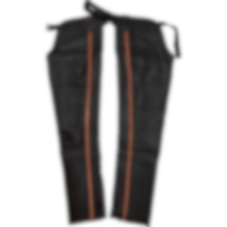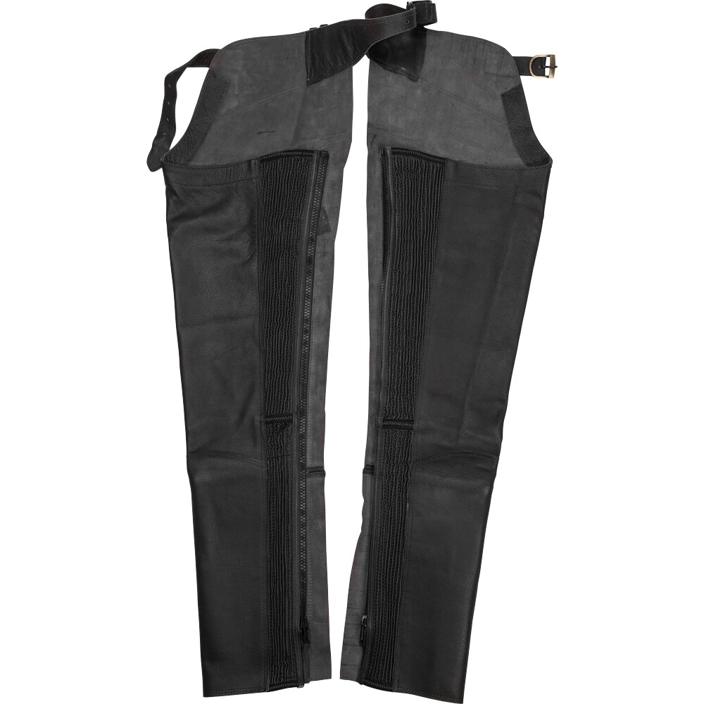 Volledige chaps, nauwsluitend ontwerp van zacht nappaleer. Elastiek langs de volledige ritssluiting. Verstelbare riem voor en achter.