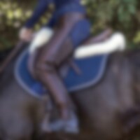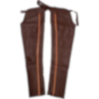 Volledige chaps, nauwsluitend ontwerp van zacht nappaleer. Elastiek langs de volledige ritssluiting. Verstelbare riem voor en achter.