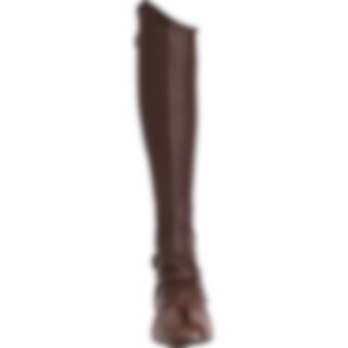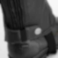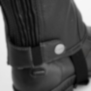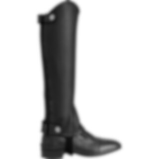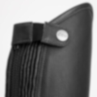 Extreem rekbare korte chaps van zacht leer. Elastiek langs beide zijden van de ritssluiting.