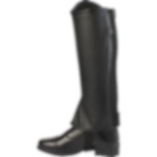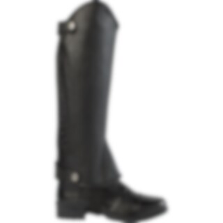 Zeer elastische korte chaps van zacht leer. Elastische panelen langs beide zijden van de ritssluiting. Ontworpen voor brede kuiten.
