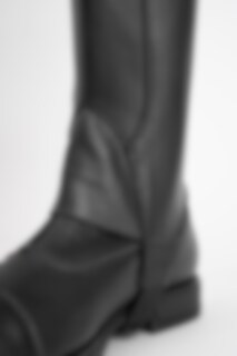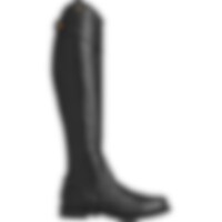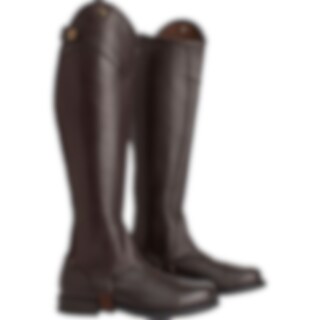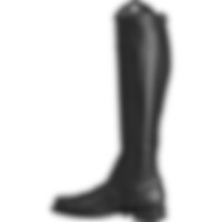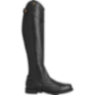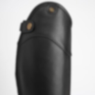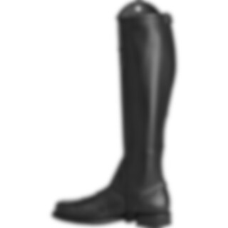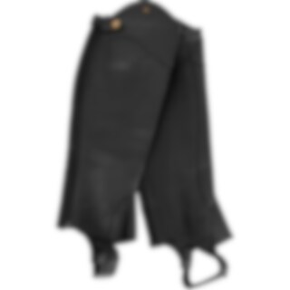 Halfchaps van zacht leer met elastische inzet over de lengte van de ritssluiting.