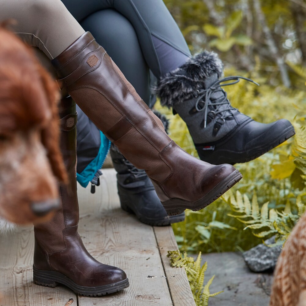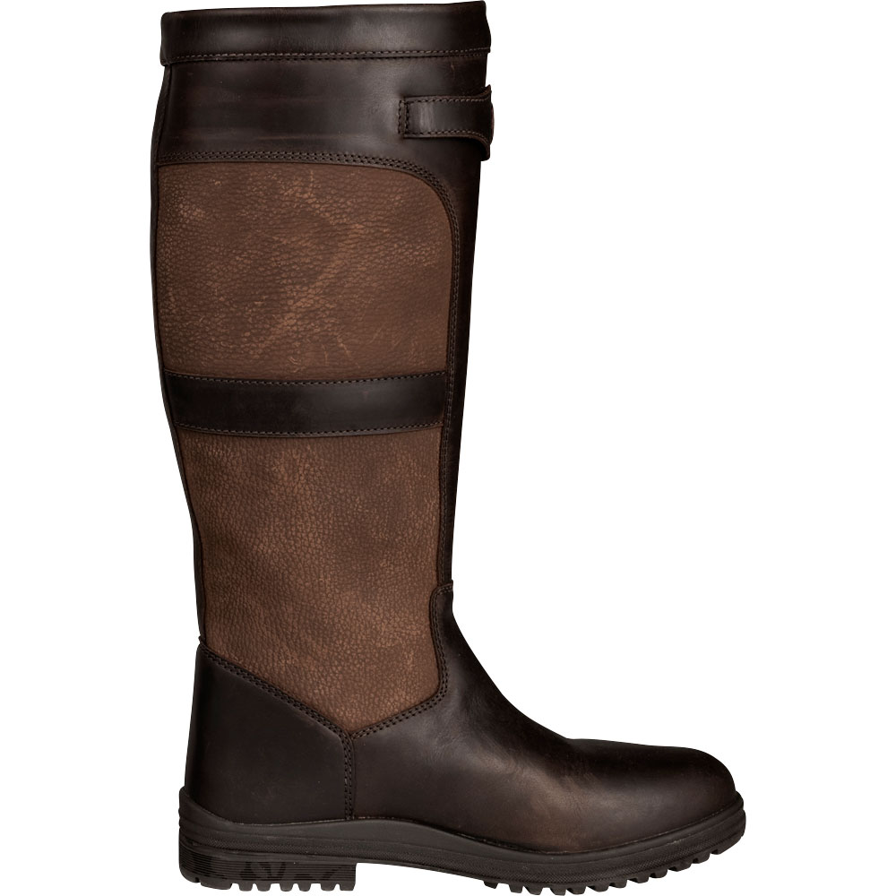 Laars van waterafstotend leer met een waterdicht membraan, waardoor de laars goed bestand is tegen water. Grove zool.