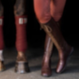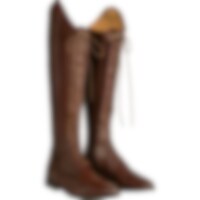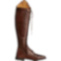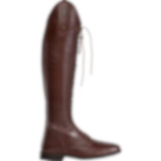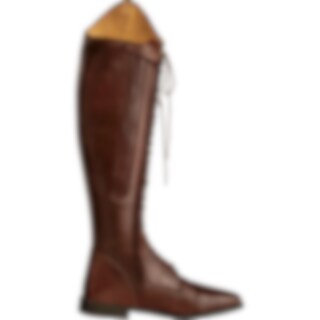 Rijlaarzen van zacht Europees leer met doorlopende vetersluiting om de schachtbreedte aan te passen. Leren voering, ritssluiting voor met bedekt elastiek ernaast.