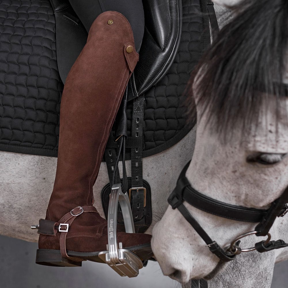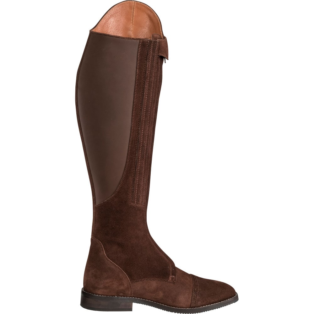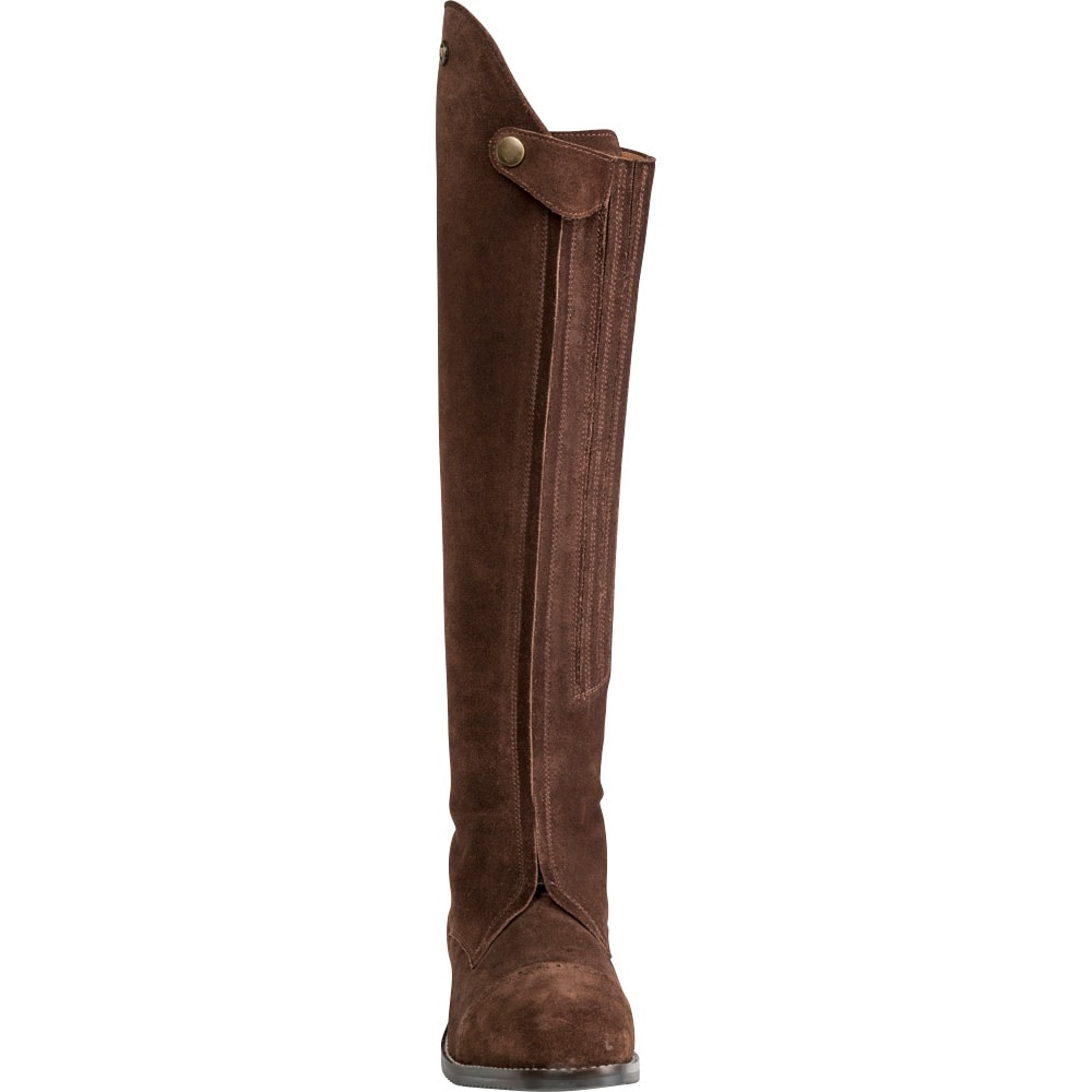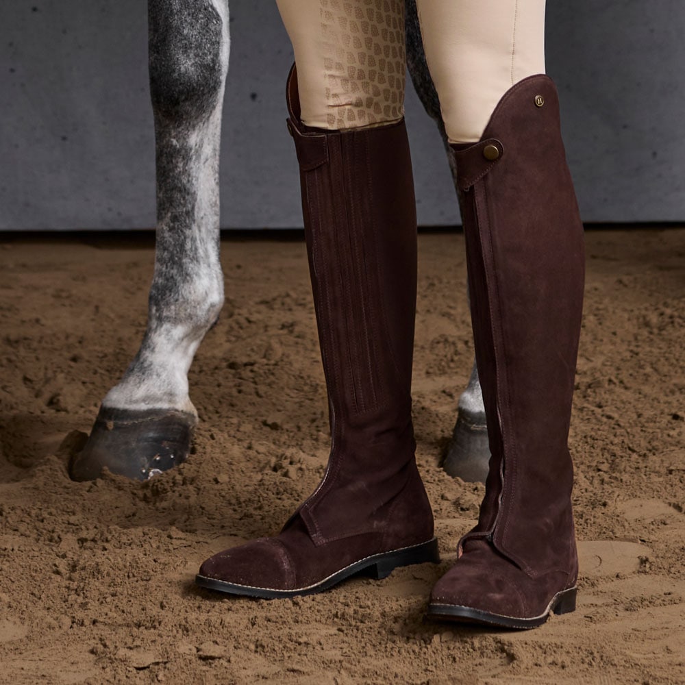 Suède laars met helemaal te openen ritssluiting aan de voorzijde waardoor die gemakkelijker is aan te trekken. Versteviging met leer aan de binnenzijde bekleed met elastische stof aan de binnenzijde van de rits. Suède is een kwetsbaar materiaal. Draag de