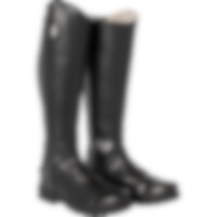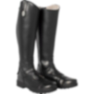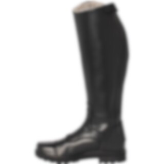 Rijlaars geheel van synthetisch materiaal met warme voering in de hele schacht en de uitneembare zool. Elastiek langs de rits, grove zool.