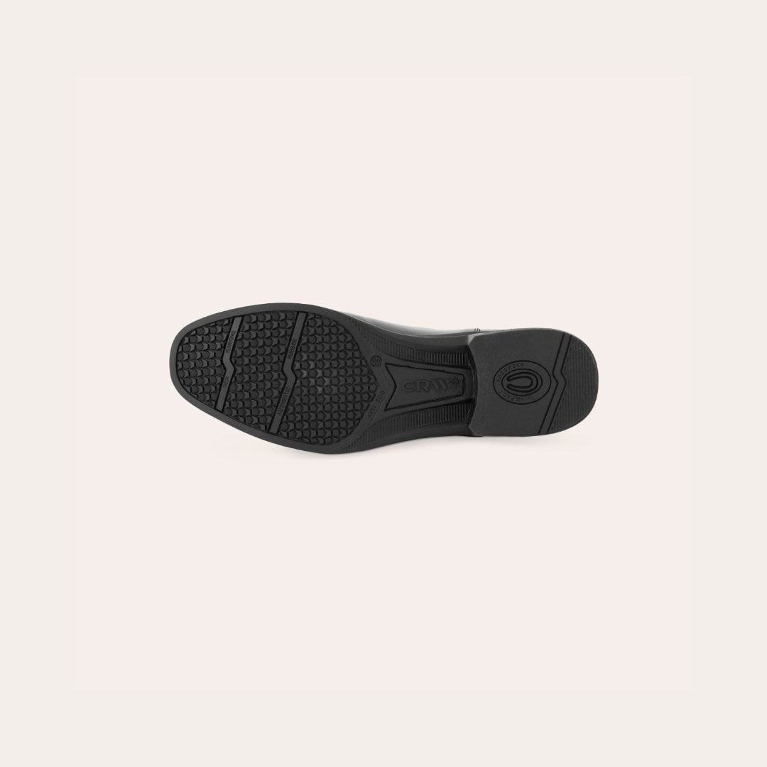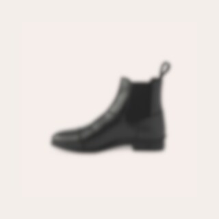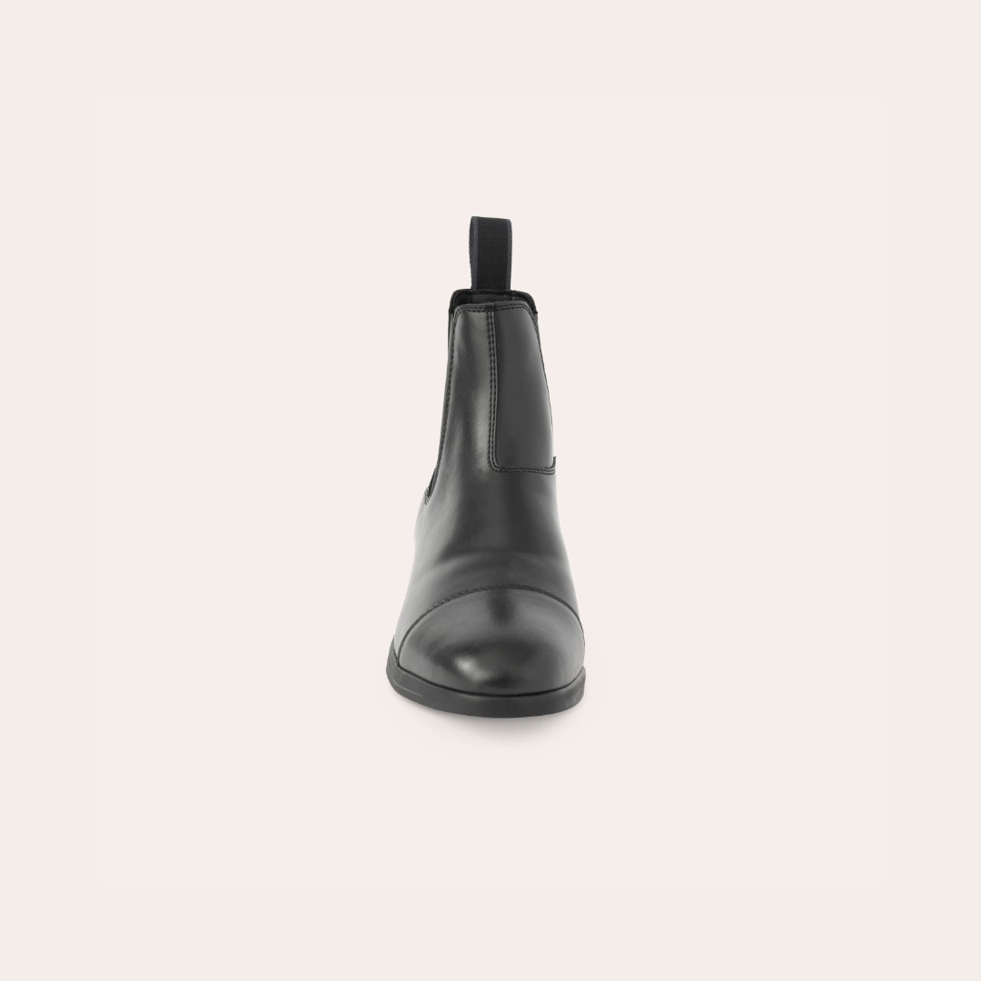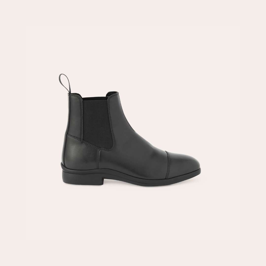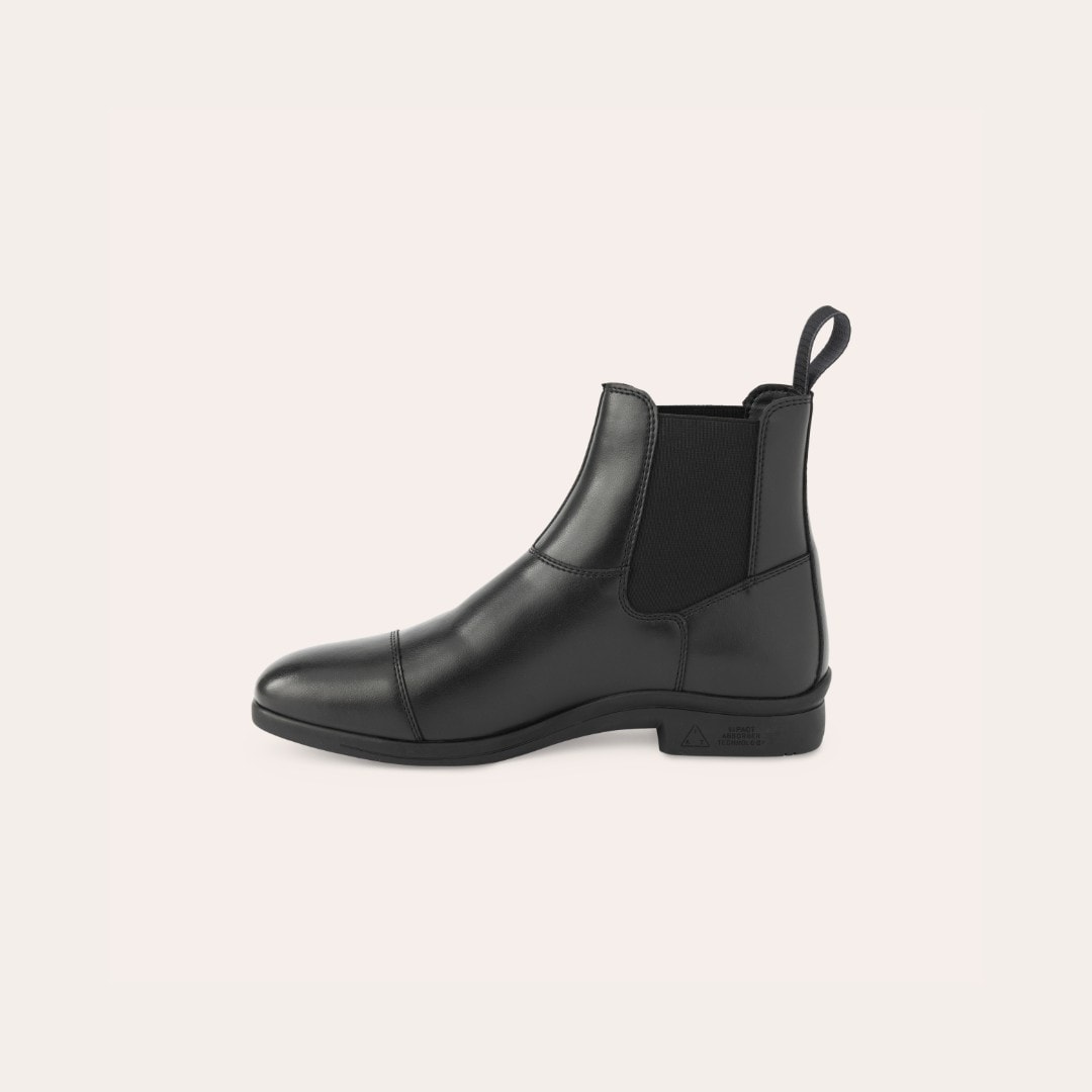 Jodhpur van zacht, waterafstotend synthetisch materiaal dat eenvoudig schoon te vegen is, met elastiek aan de zijkant. Rubberen zool.