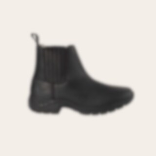 Jodhpur van geolied nubuck met ruwe, rubberen zool. Rits aan de zijkant. Gevoerd met 20% wol en 80% polyester. Houdt de voeten warm, zowel in de stal als tijdens de rit, of buiten in het bos met de hond.