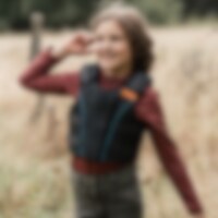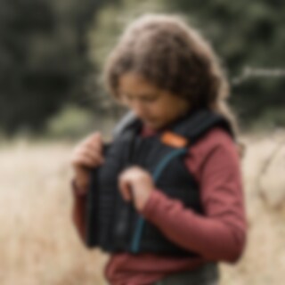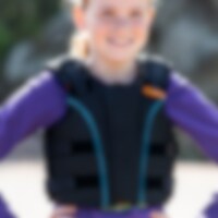 Klittenband op taille en schouders, gemakkelijk verstelbaar. Ritssluiting aan de voorkant Geventileerde, zachte vulling Uitneembare buitenschaal.