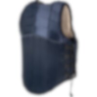 Veiligheidsvest van model RS2010. Rits aan de voorkant en veters aan de zijkanten. Tot 80 afzonderlijke panelen die zich aanpassen aan alle lichaamsbewegingen en lichaamsvocht laten verdampen.