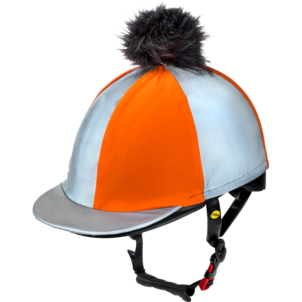 Capcover van stretchlycra die over bijna alle caps heen past. Uiterst geschikt voor jockeycaps. Om en om reflecterend materiaal voor extra zichtbaarheid in het donker en fluorescerende kleuren om extra op te vallen in de schemering. Met scherm en afneemba
