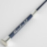 Een lichte dressuur-/allroundzweep met handvat van synthetisch leer en zilverkleurige, kunststof knop.