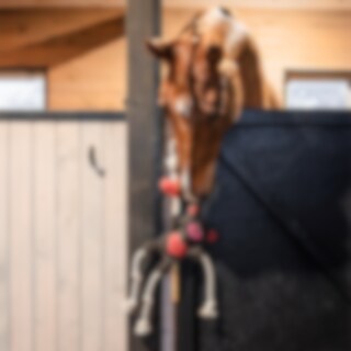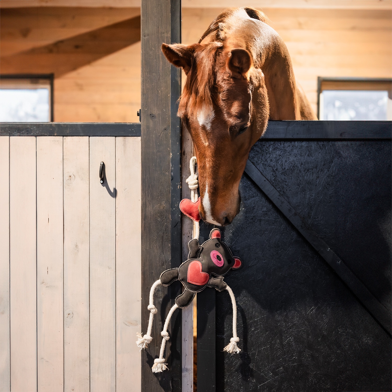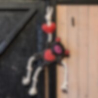 Speelgoed vervaardigd van slijtvaste, zacht gewatteerd suède in de vorm van een teddybeer. Gemakkelijk te bevestigen in de box. Ca. 31 x 23 cm exclusief touw.