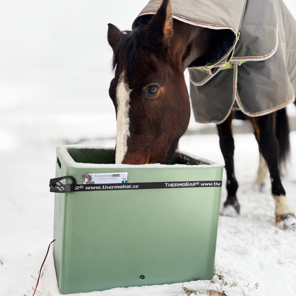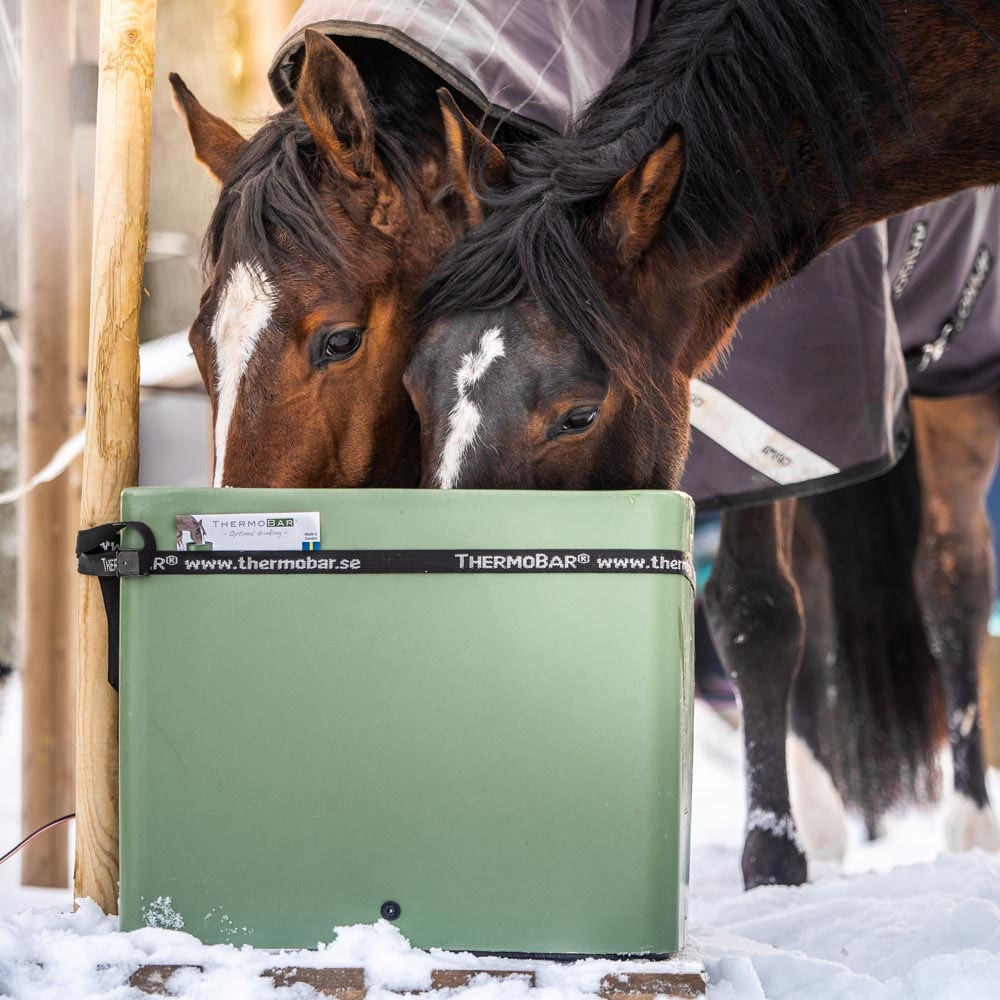 ThermoBar 65 ECO is het resultaat van 10 jaar discussie met dierenartsen en onderzoeken hoe de watervoorziening voor dieren kan worden vereenvoudigd en verbeterd. Ervoor zorgen dat de dieren altijd toegang hebben tot water, zelfs in de winter, is voor veel eigenaren een groot probleem geworden. Vervaardigd uit voedselveilige kunststoffen. Het effectieve opwarmproces zorgt voor een laag energieverbruik. De geïsoleerde doorgang wordt verwarmd door een verwarmingsfolie met een thermostaat in de bodem van de doorgang, dit voorkomt dat het water bevriest bij temperaturen tot -30-40 °C. De temperatuur van het water zal niet hoger zijn dan 15-20°C. Een lichtdiode geeft aan of de stroom is ingeschakeld. ThermoBar is eenvoudig te installeren en wordt compleet met alle kabels geleverd. Geïnstalleerd via een transformator die de stroom omzet in veilige 24 V. Gemaakt in de EU.