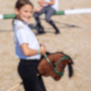 Stokpaardje, type halfbloed met zachte haren van 100% polyester. De houten stok kan gemakkelijk op de juiste lengte worden gezaagd. De manen van polyester bieden een goed houvast. Stevige vulling van 100% polyester en mond die kan worden gesloten met klittenband zodat trens/bit goed blijft zitten. Paardje met dressuurtalent en pit dat graag springt. Getest volgens EN71-2-3 en CE gecertificeerd. Verwijder alle labels en plastic hangers voor gebruik.