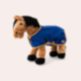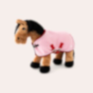 Luxueuze fleecedeken met gespen van kunstleer voorop en kruisbanden met T-gesp. Contrasterende randband van zachte katoenen twill, biezen en borduursels. Zeer geschikt voor de zachte minipaardjes Clyde, Joker en Lancelot van Hööks. CE-keurmerk en getest
